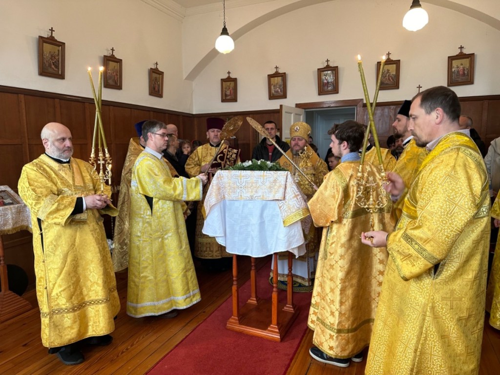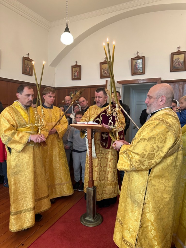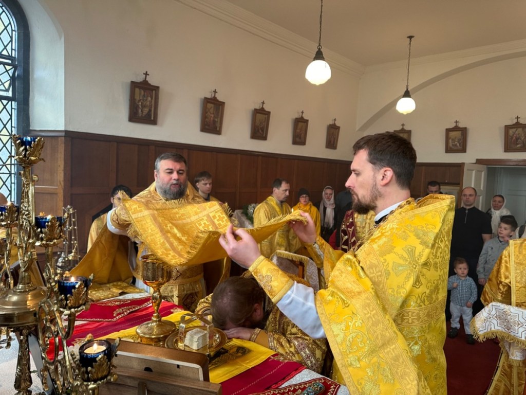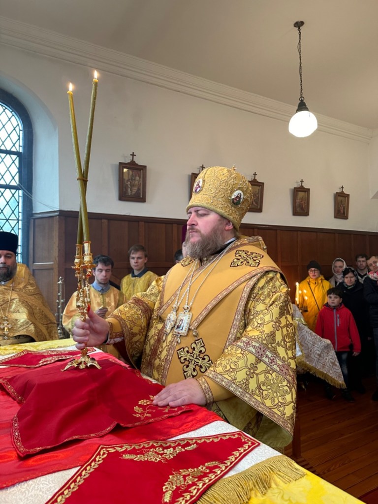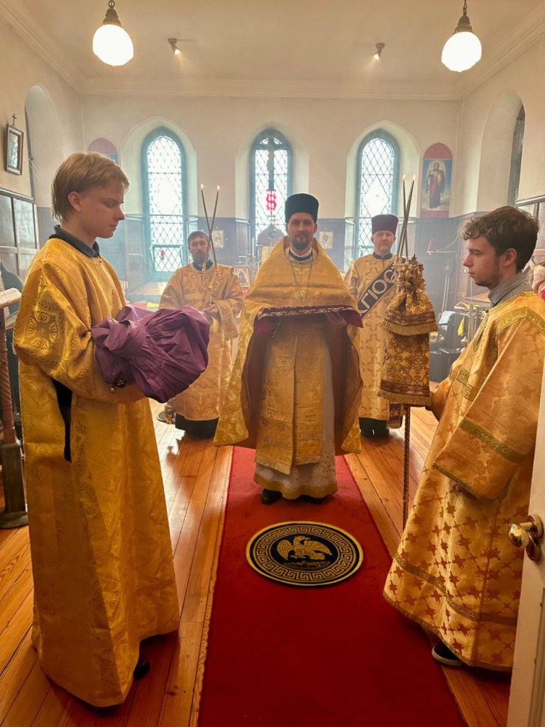 За Божественной литургией Его Преосвященству сослужили: секретарь Сурожской епархии протоиерей Димитрий Недоступенко, настоятель общины иерей Иоанн Казадоев, клирики Петропавловского храма г. Дублина диакон Сергий Старовойтов и диакон Иоанн Чернелевски.