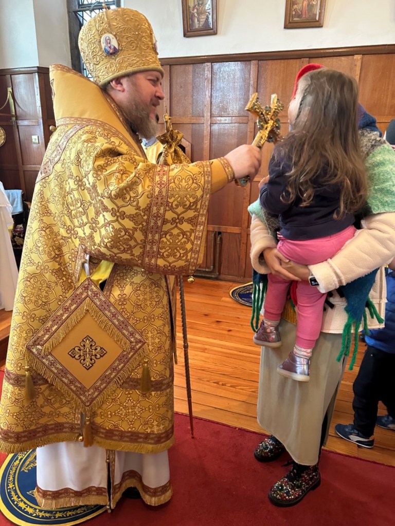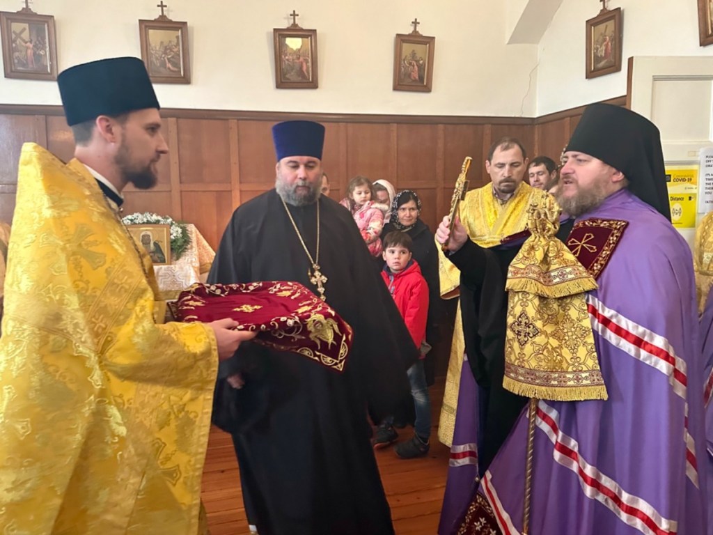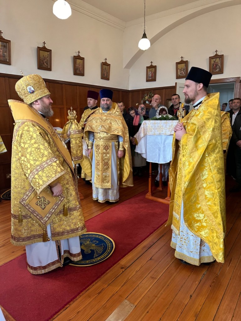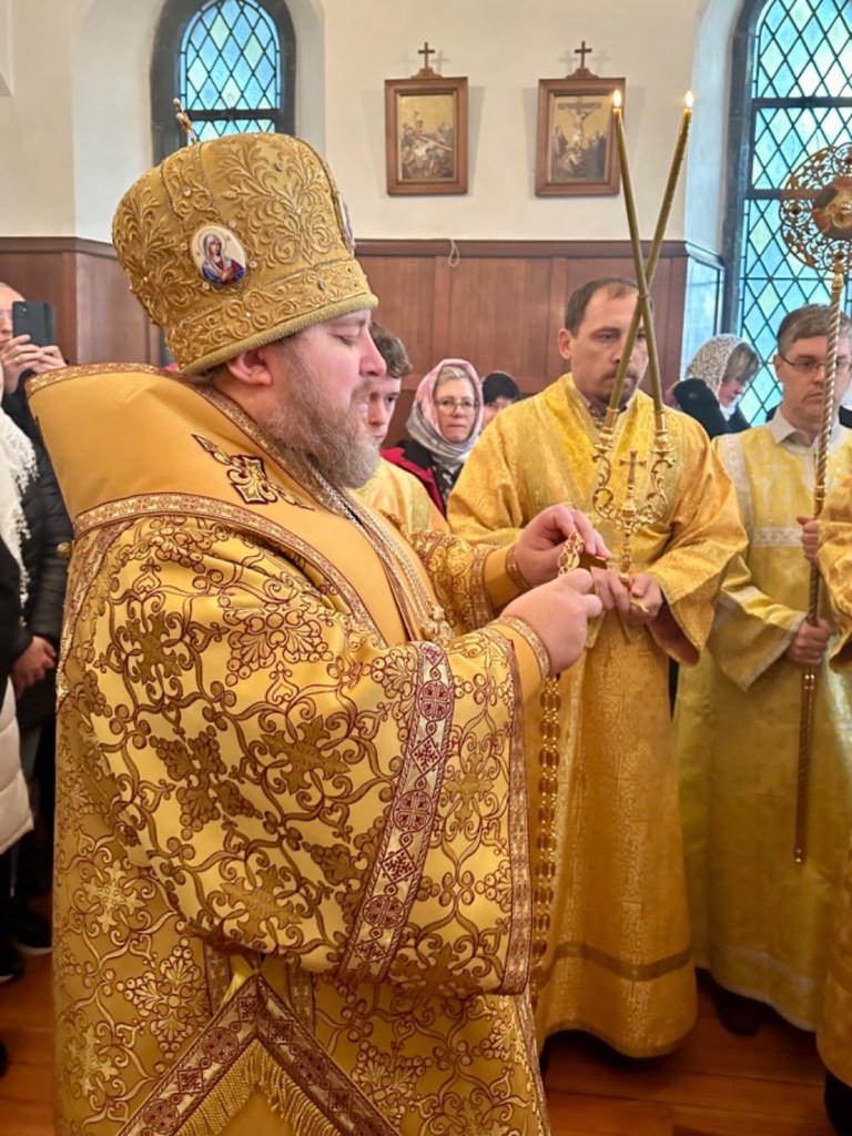 На малом входе, во внимание к усердным пастырским трудам, епископ Матфей удостоил настоятеля общины иерея Иоанна Казадоева богослужебно-иерархической награды Русской Православной Церкви – правом ношения золотого наперсного креста.