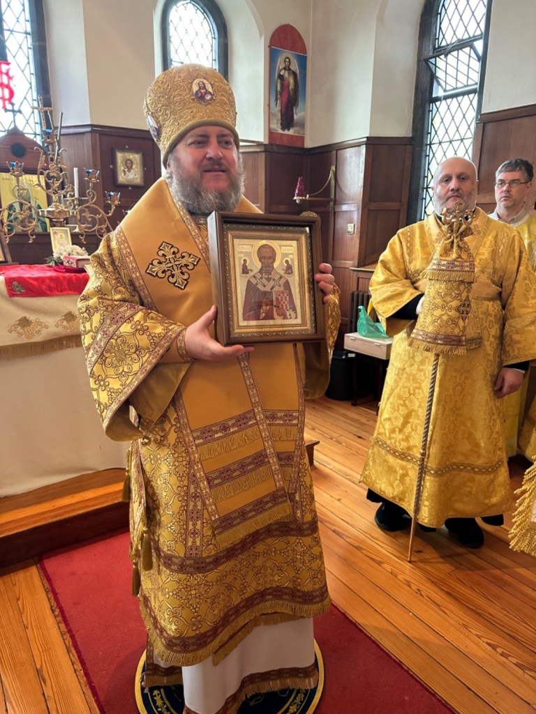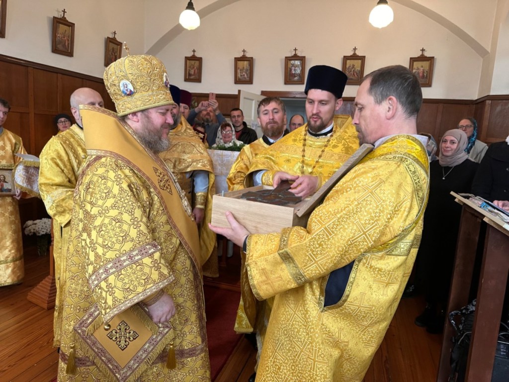 В свою очередь Владыка Матфей поздравил настотяеля и прихожан с престольным торжеством, пожелал общине помощи Божией в развитии и укреплении церковно-приходской жизни и в память о своем посещении передал в дар образ свт. Николая Чудотворца.